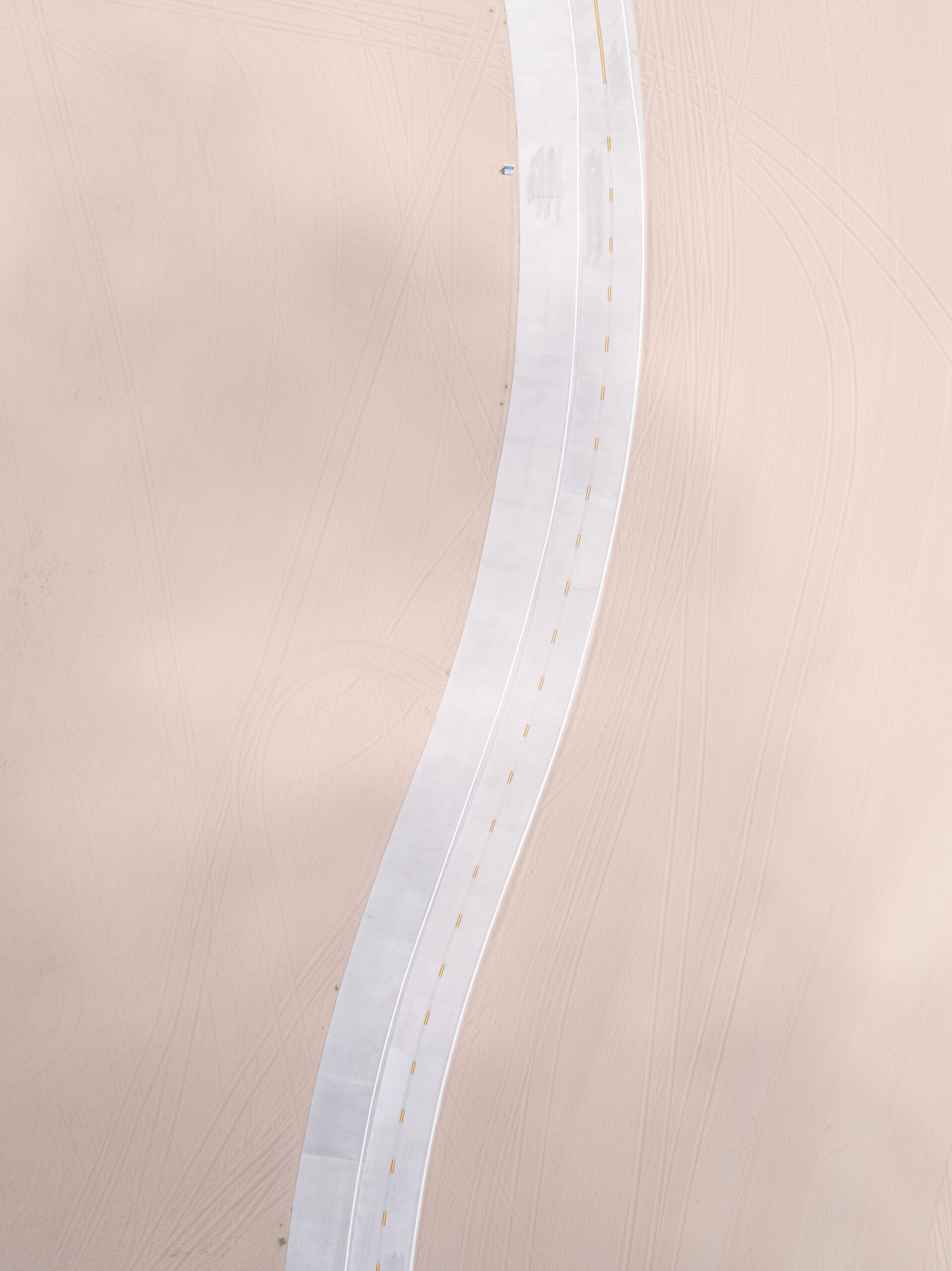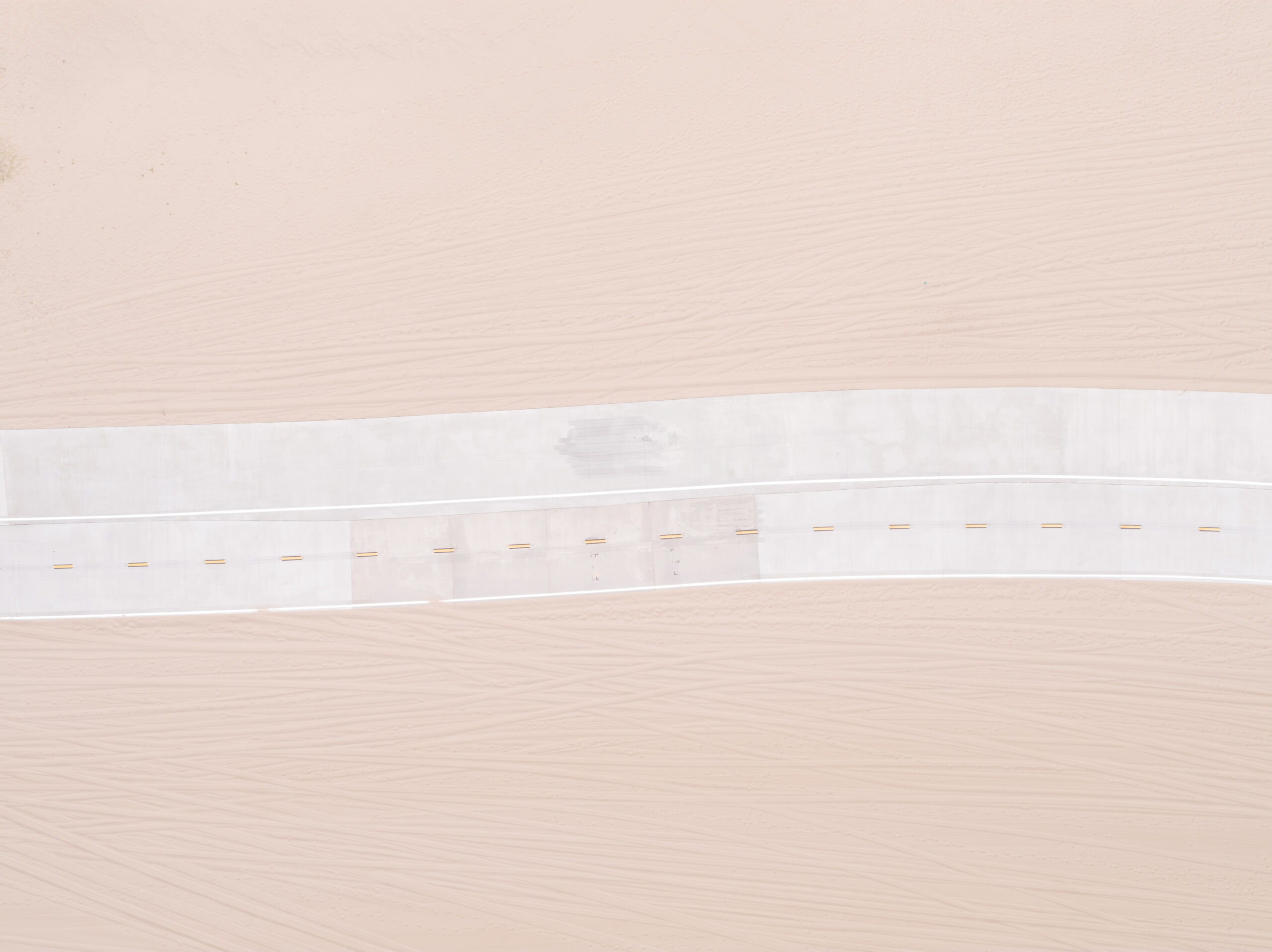 Stillness in motion — a quiet path cutting through an ocean of sand. I love how perspective can turn something ordinary into something calm and surreal.