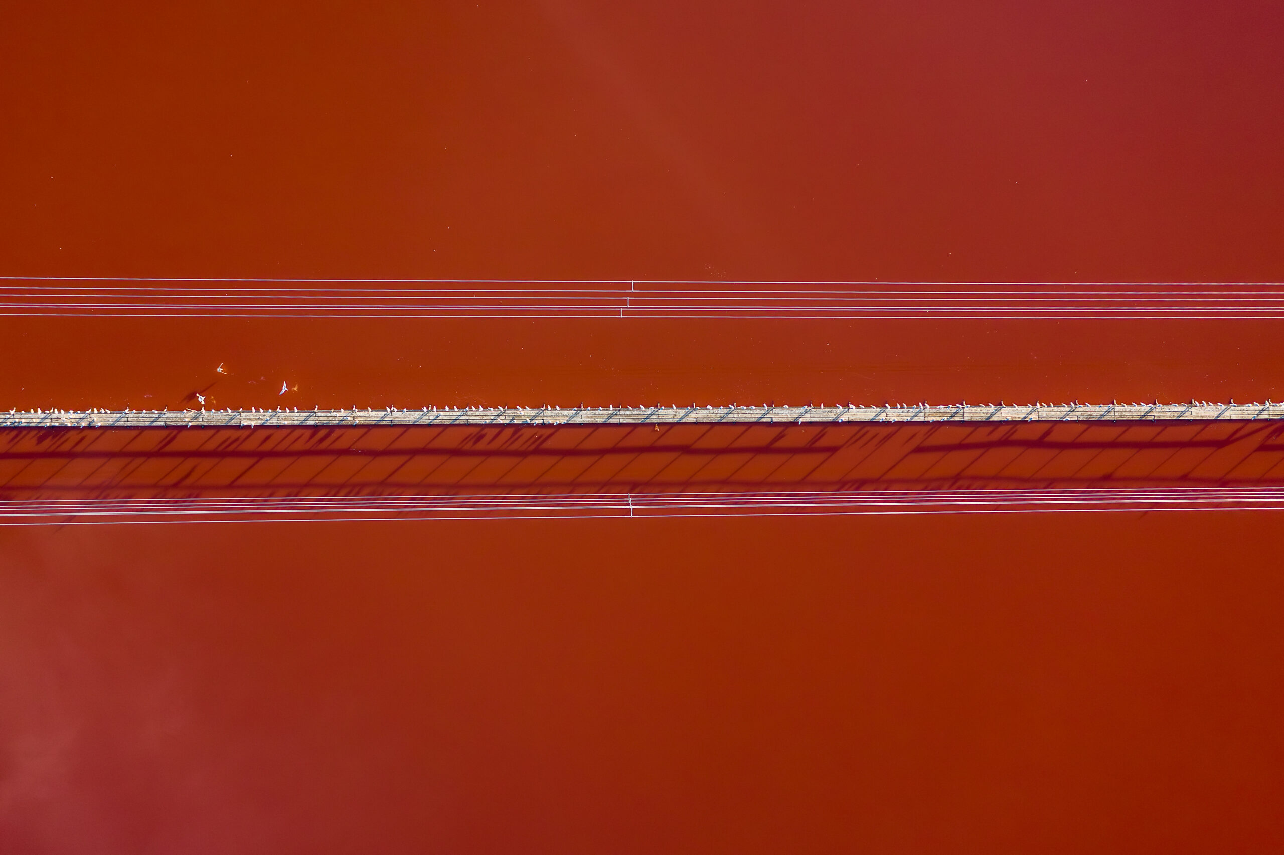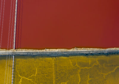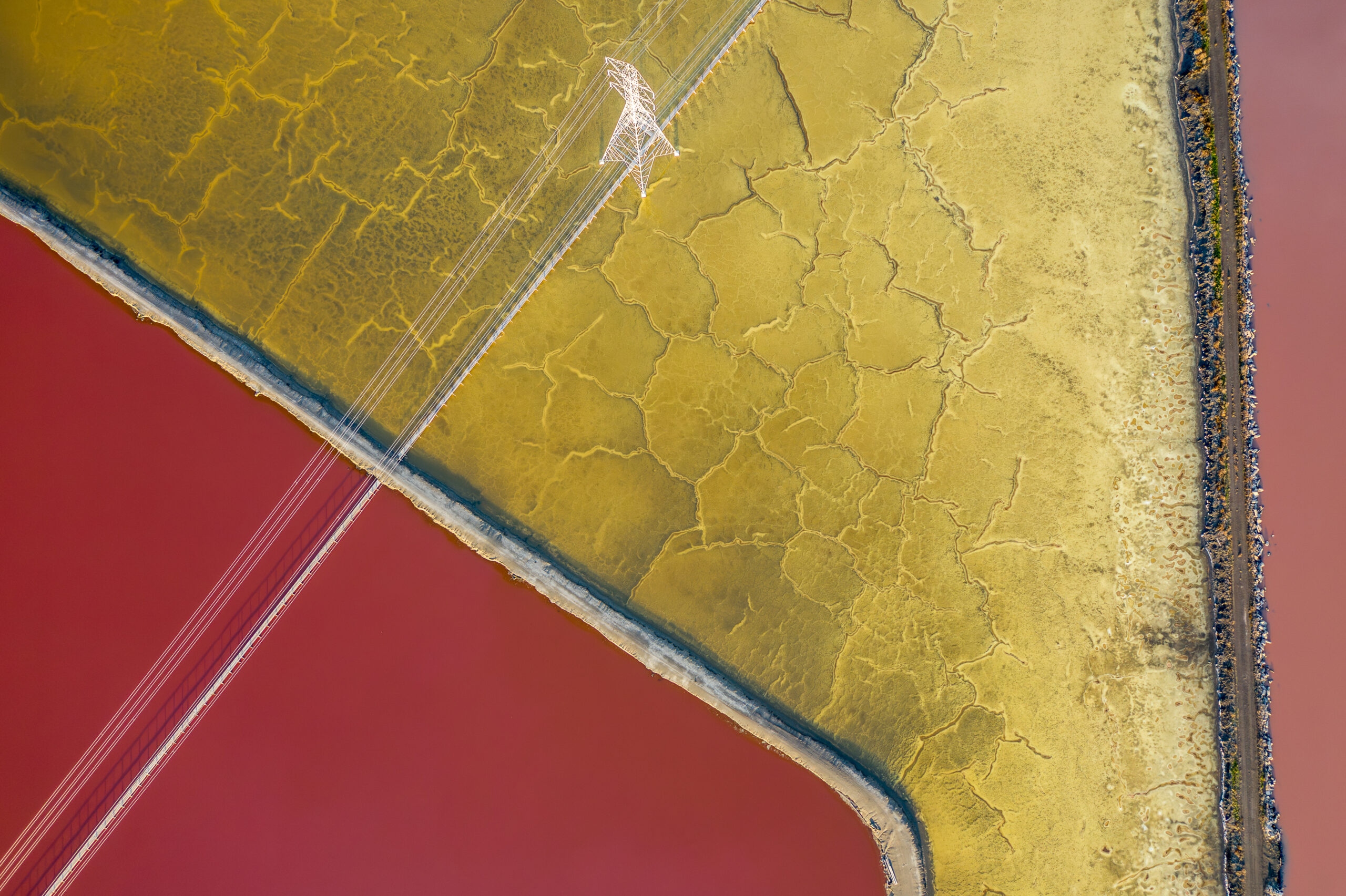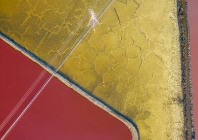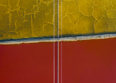 Seeing Red presents a series of aerial abstractions exploring the interplay between color, structure, and landscape. Shot above California’s salt ponds, these compositions reveal a delicate tension between natural process and human intervention. Through precise geometry and vivid hue, the familiar becomes otherworldly — transforming industrial terrain into minimalist works of art.