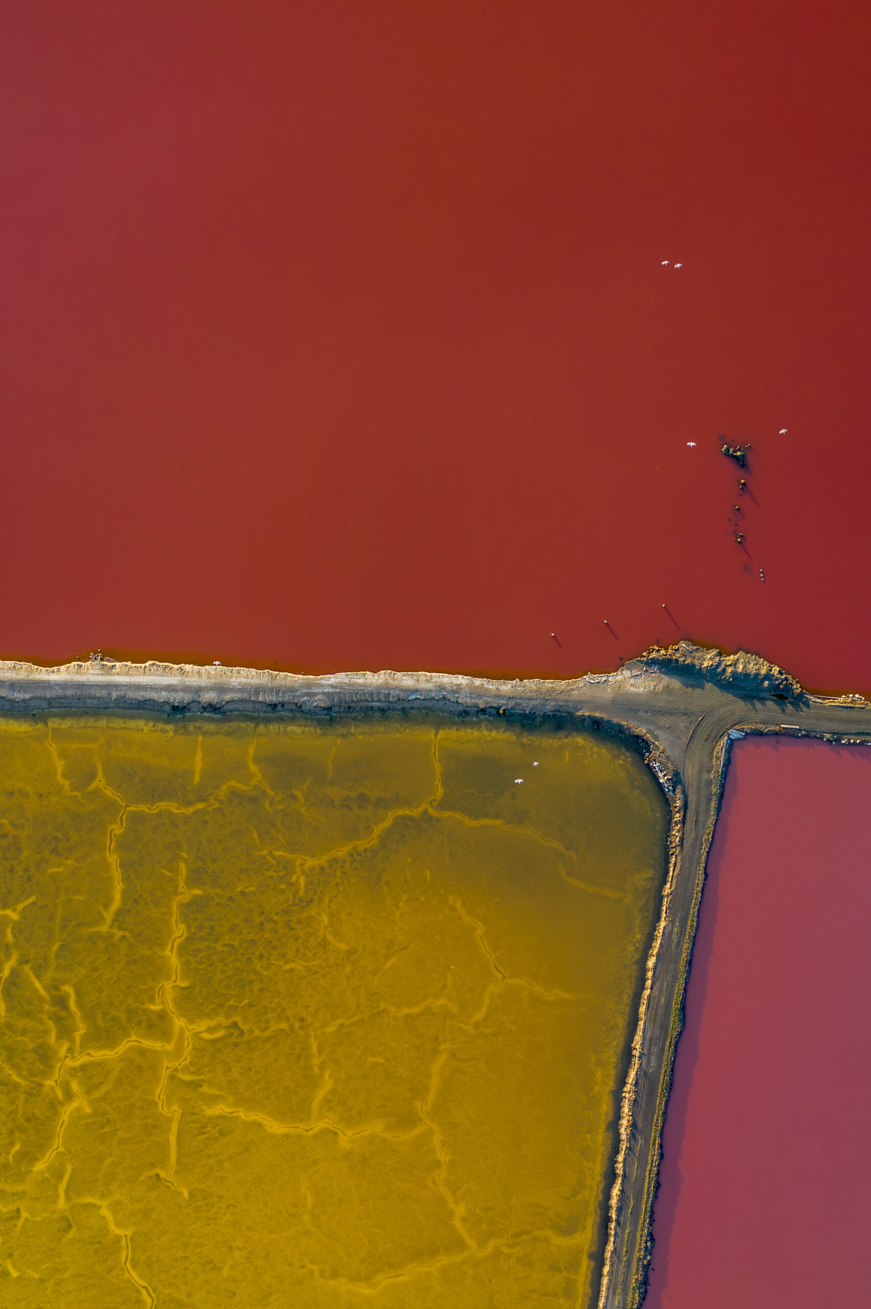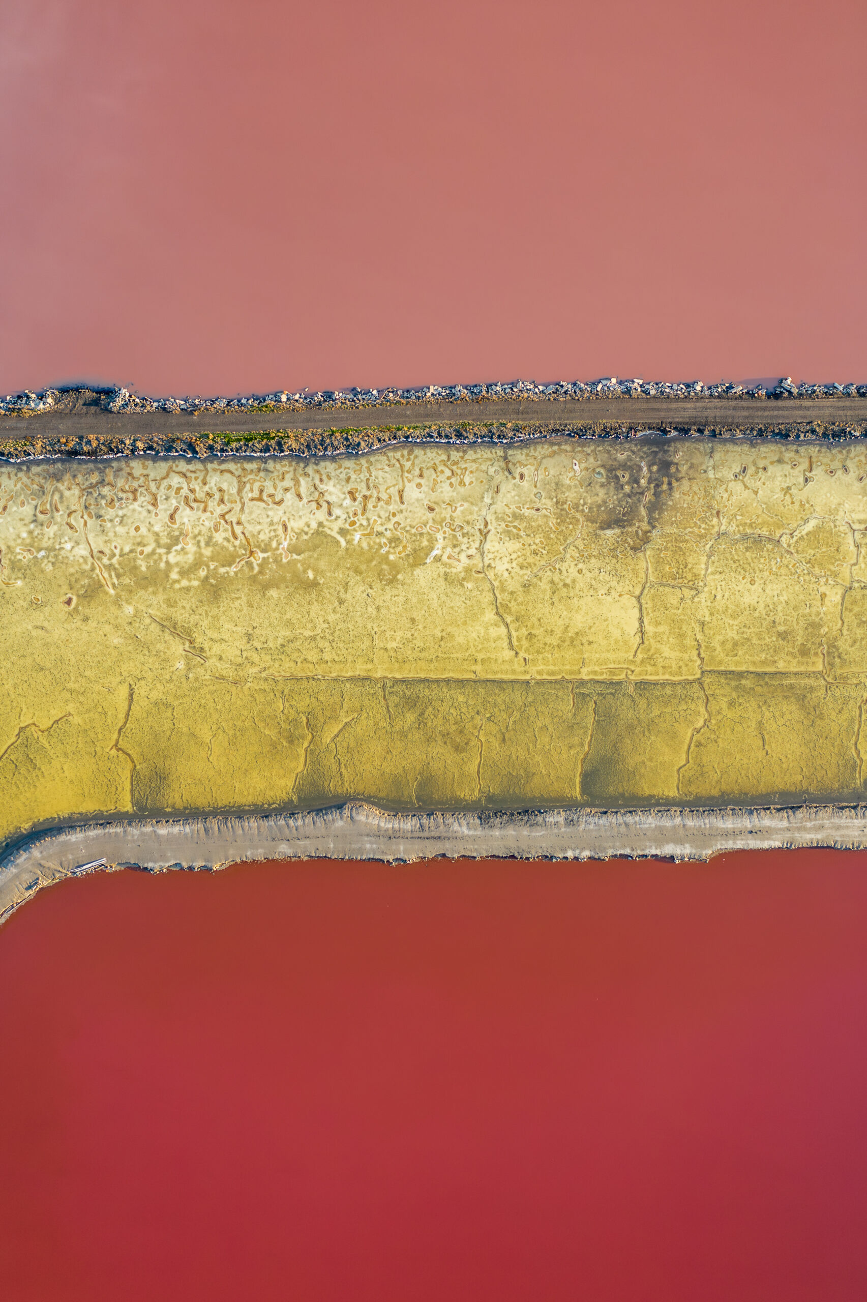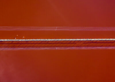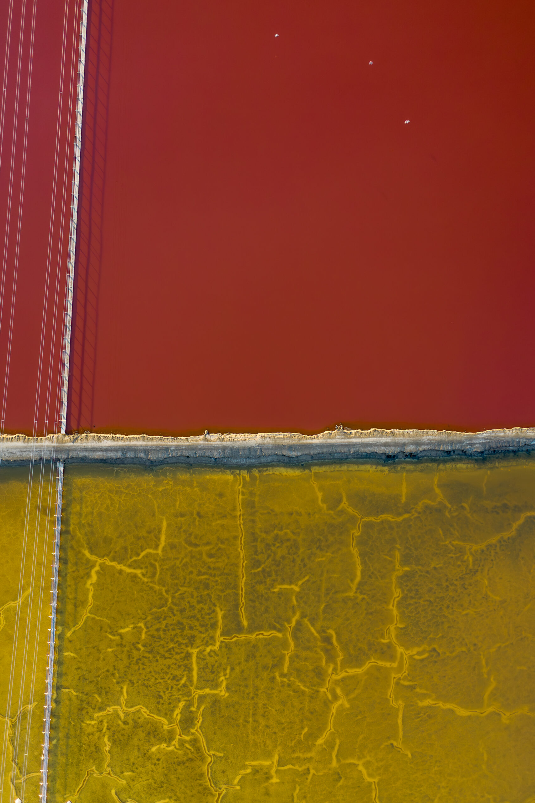 Seeing Red presents a series of aerial abstractions exploring the interplay between color, structure, and landscape. Shot above California’s salt ponds, these compositions reveal a delicate tension between natural process and human intervention. Through precise geometry and vivid hue, the familiar becomes otherworldly — transforming industrial terrain into minimalist works of art.